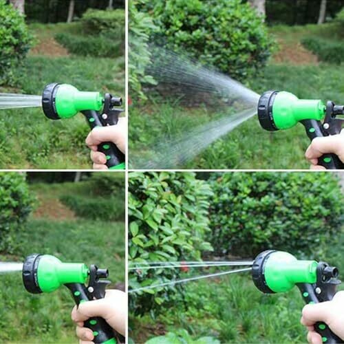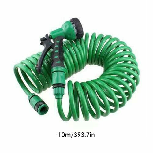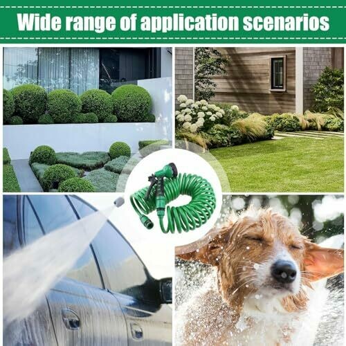 This durable spiral water hose offers 7 different modes and is resistant to wear. With a safe, leak-free connection, it won't damage plants while watering. Available in 7.5m, 15m, or 30m lengths, it comes with a spray head and connectors for easy use.