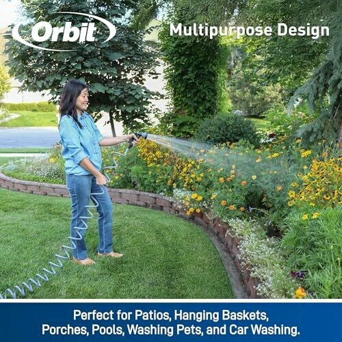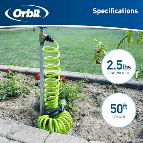 • The 50-ft. Orbit Coil Hose with 8-Pattern Plastic Nozzle is perfect for everyday watering needs