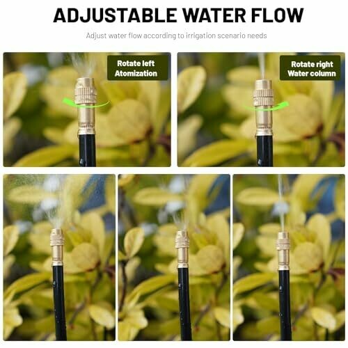 • 360° garden watering system: Adjustable detachable washable nozzle, the nozzle is made of solid copper instead of plastic, ensuring a durable and long-lasting product. The built-in metal hose of the nozzle can be bent and fixed at any 360° angle. It is convenient to adjust the place where spray is needed and specify the direction.