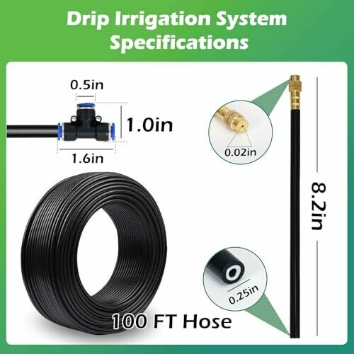 • Upgraded Leak-Proof Brass Design: FOKATY's garden drip irrigation system features corrosion-resistant brass nozzles and 0.5 inch T-connectors with reinforced seals for zero leaks. Includes dual-filtered faucet adapters to block impurities—ideal for hard water!