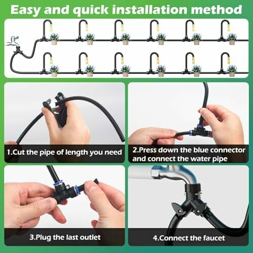 • Simple and Reusable: The new quick connector garden watering system uses a pneumatic tee connection mode to replace traditional socket connection, plug-and-play irrigation tube, not easy to fall off and leak. Even if a connection is made incorrectly, it can be disassembled and reconnected with a detailed user manual.