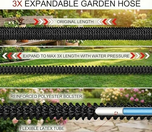• Apexorigin Expandable Garden Hose, Ultra-light & Flexible Water Hose with Hose Nozzle 30m