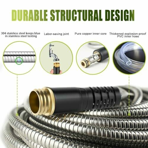 • Blissora Stainless Steel Garden Hose, Leakproof Water Hose with Garden Nozzle Sprayer, 15m