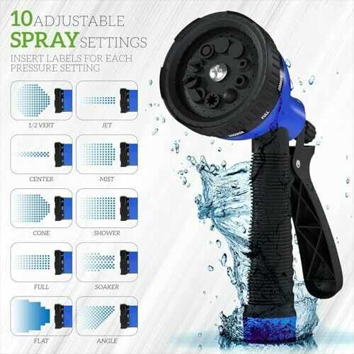 - Hose with 10 Spray Nozzles: Garden hose is designed with 10 styles of hose spray, this high-pressure garden hose is universal for all kinds of garden watering jobs. Watering the garden plants and flowers, washing the car, taking a bath for your pet, or cleaning outdoor windows in a simple way.