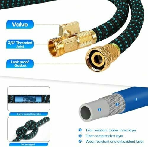 - Garden hose: This garden hose is made from the highest quality materials and is of the advanced craft, extremely functional, lightweight and flexible, durable. The hose will never kink, twist, leak, burst, or get tangled up while in use.