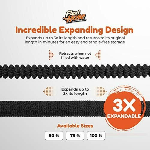 Flexi Hose lightweight expandable garden hose, no-kink flexibility, 3/4 inch solid brass fittings and double latex core. The Flexi Hose expandable garden hose automatically expands up to 3 times its original length with standard pressure when water is turned on and shortens to its length when the water is turned off. Solid 3/4 inch brass connectors ensure the expanding garden water pipe fits the typical outdoor garden taps in the US. The 3750D elastic outer fabric with 4 layers of latex protects the inner tube effectively from thorns, punctures, and sharp corners. Every Flexi Hose is endurance-tested to 2000 uses and can withstand water pressures up to 12 Bar and temperatures between 41 and 113 degrees Fahrenheit.