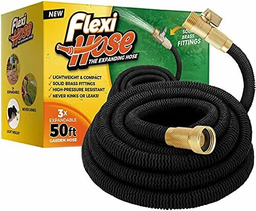 - The Flexi Hose expandable garden hose automatically expands to the stated product length - roughly 3 times extension - with standard pressure when water is turned on, and shortens to compact length when the water is turned off. Storing the Flexi Hose is a breeze!