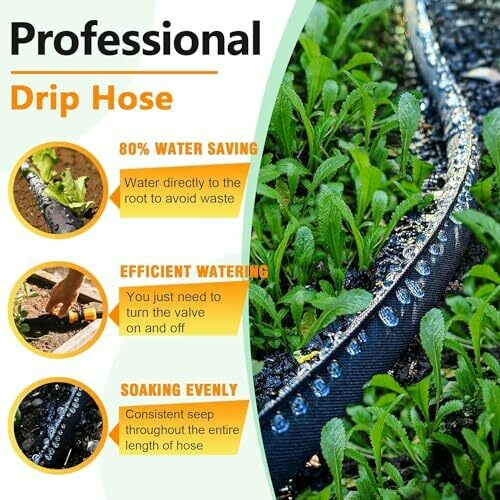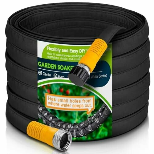 Upgraded performance with durable connectors and reinforced sleeve to prevent leaks and cracks. The waterproof fabric and scientifically designed sprinkling apertures provide a slow, even water flow for efficient watering. Made of kink-resistant PVC flat hose and extra-strength woven nylon for durability against sun, freezing, water pressure, and abrasion. Connects easily to faucets and other hoses with 3/4" standard threaded connectors. Reduces water loss by delivering water directly to plant roots, minimizing evaporation. Efficiently seeps water with pressure kept within 60 PSI. Spend more time enjoying your garden with this soaker hose.