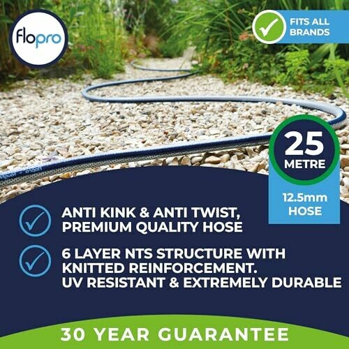 Flopro 70309031 Flex-flo Kink Free Technology Hose 25m + Coupling Connector, Blue