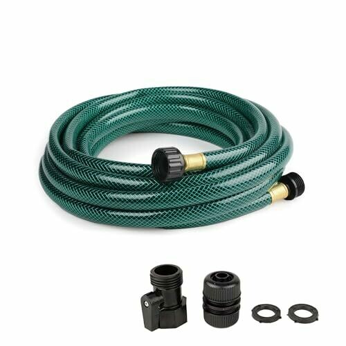 Available in 25ft and 50ft lengths, ideal for small and large outdoor spaces. 1/2-inch diameter provides sufficient water flow for most outdoor tasks. GHT brass fittings for easy connection to a standard 3/4-inch faucet. Includes 2 connectors and rubber washers for leakproof setup. Kink-resistant design prevents interruptions during use. PVC construction is resistant to UV rays, corrosion, and wear.