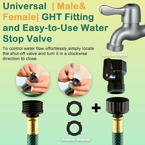 - Specification: Contains a 1/2" diameter 25FT outdoor garden hose, with a GHT connector (adapt 3/4" tap faucet), 2 connectors, 2 black rubber washers.