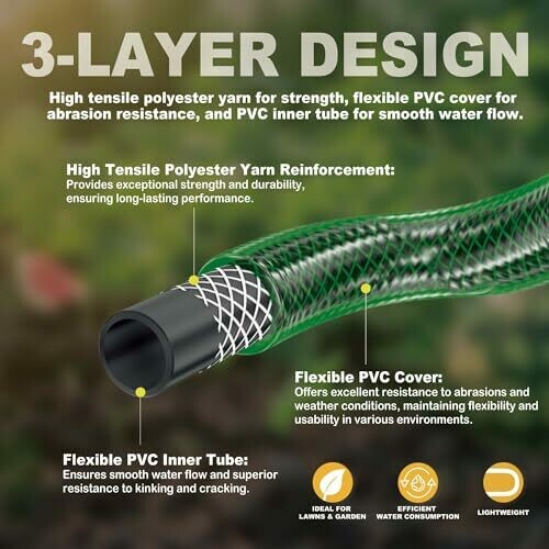 • Eco-Friendly & Safe: Made from PVC, the hose is corrosion-resistant and designed with the environment in mind. It does not release any harmful chemicals into the surroundings, making it safe for use around plants, pets, and children.