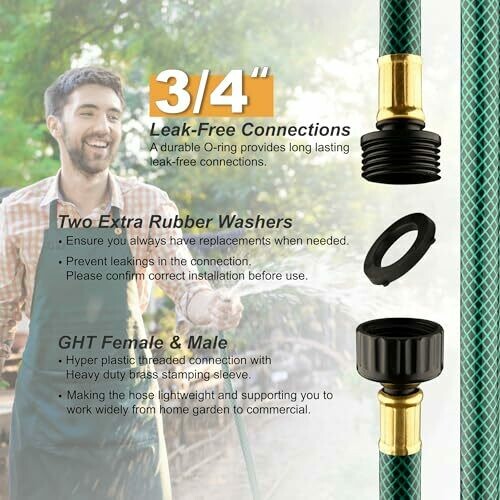 - Leak-proof: Featuring brass-pressed fittings and plastic connectors, our hose comes with built-in gaskets to prevent water leakage. This design not only ensures a secure connection but also optimizes water resource utilization, ensuring that every drop is used effectively.