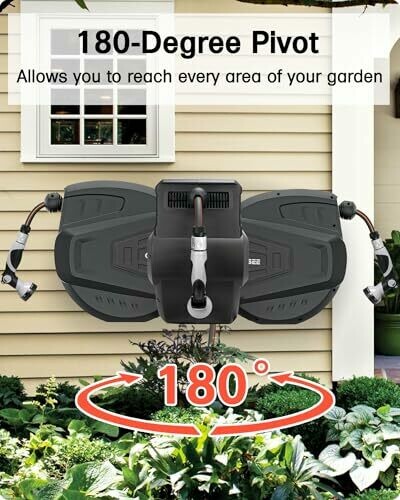 • Garden hose reel wall-mounted design, coupled with a 180 swivel bracket, makes maneuvering around your yard effortless. Wall mounted garden hose reel allows you to easily water different parts of your garden without moving the reel, without the hassle of tangled hoses or manual winding.