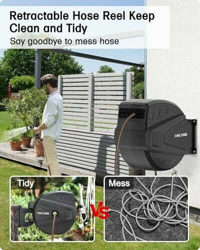 • Onlysee Retractable Garden Hose Reel, 30m Garden Hose Reel Wall Mounted