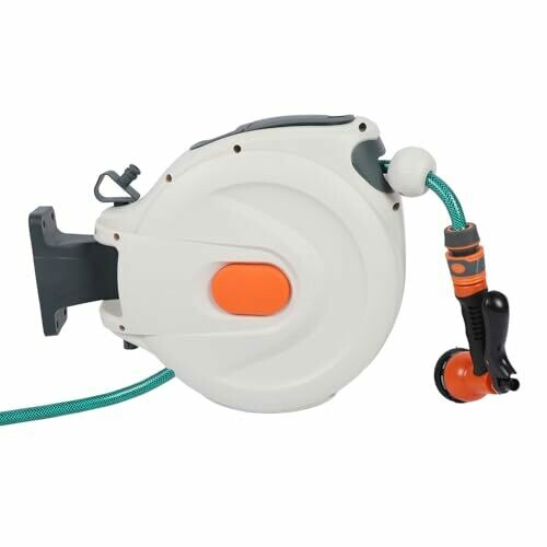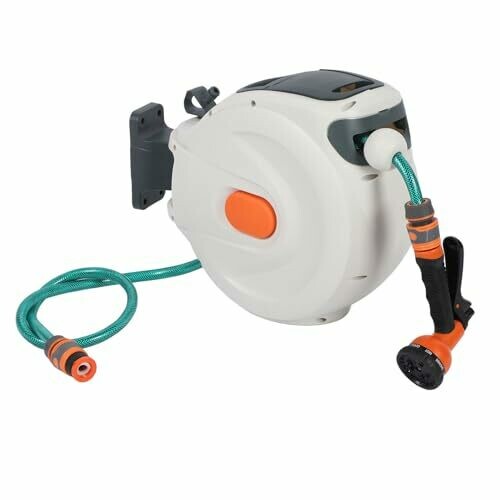 Retractable Garden Hose Reel Standing Wall Mount with Sprayer Nozzle 10m