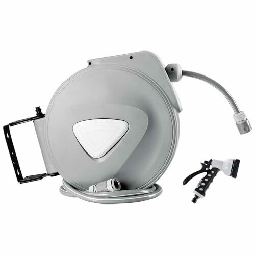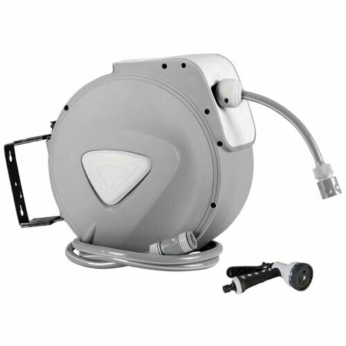Retractable Hose Reel, 20m Garden Pressure Water Washer Spray Gun Auto Reel