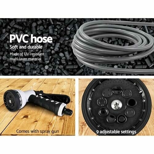 - Includes 20m UV resistant PVC hose and brass spray gun