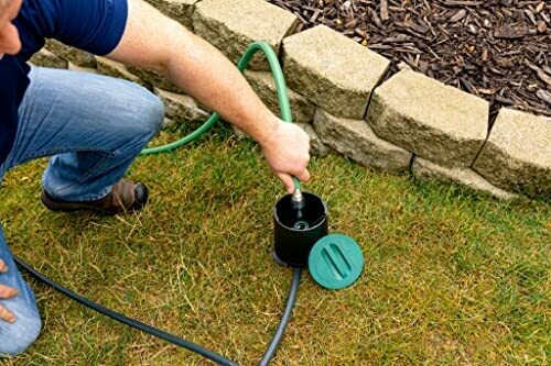 • In-ground “click-n-go” connection lets you quickly attach/detach any common garden hose to operate the system