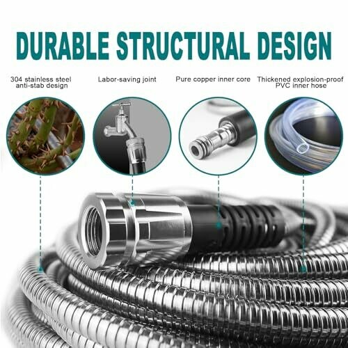 • The Relxitl stainless steel garden hose features a 304 stainless steel exterior and thickened PVC inner tube, making it corrosion-resistant and durable for long-term use.