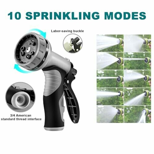 • The upgraded aluminum connector is sturdy and leak-proof, and the nozzle offers 10 spray patterns to meet irrigation and cleaning needs.