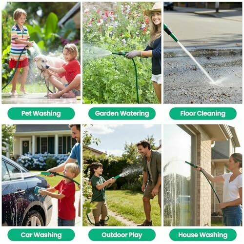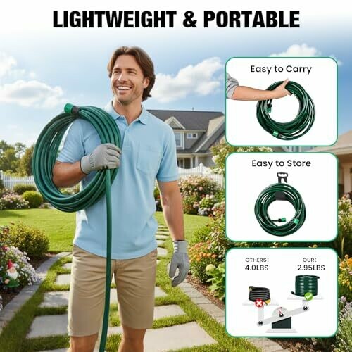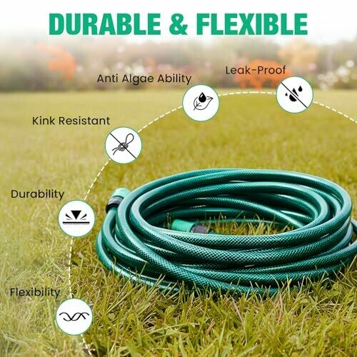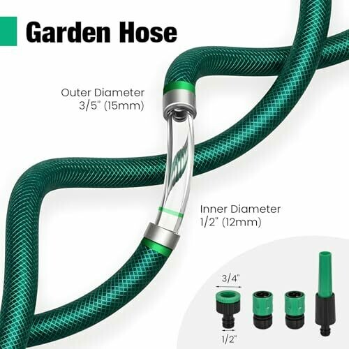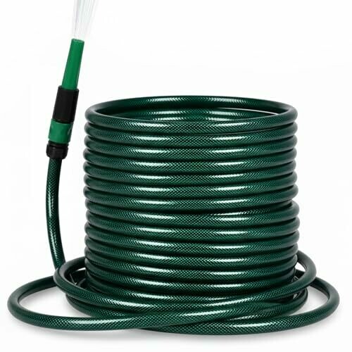 This 15m garden hose has an inner diameter of 1/2-in(12mm) and an outer diameter of 3/5-in(15mm), suitable for daily water flow. The 225PSI high burst strength is combined with a 3-layer weaving design, as well as a polyester reinforcement layer and multi-layer material construction, greatly improving the pressure resistance and damage resistance. The hose also has kink resistance, which do not require repeated sorting during use. The UV-resistance material can resist outdoor sun aging, and the anti-algae ability can prevent the growth of algae in the pipe and ensure clean water delivery. The ABS nozzle and connectors matched with it can flexibly adjust the water flow, suitable for various needs such as gardening watering and vehicle washing.