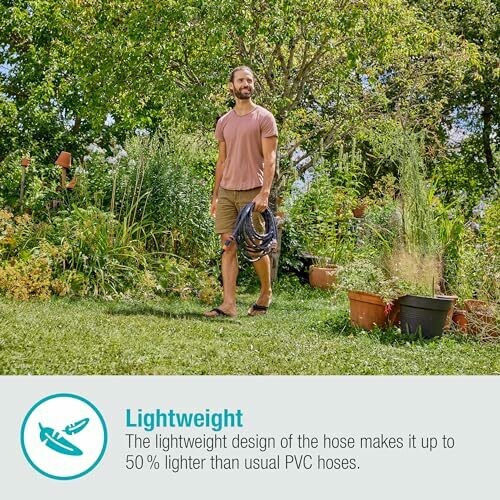- Hose is up to 50% lighter than conventional PVC hoses, can be stored in a space-saving way