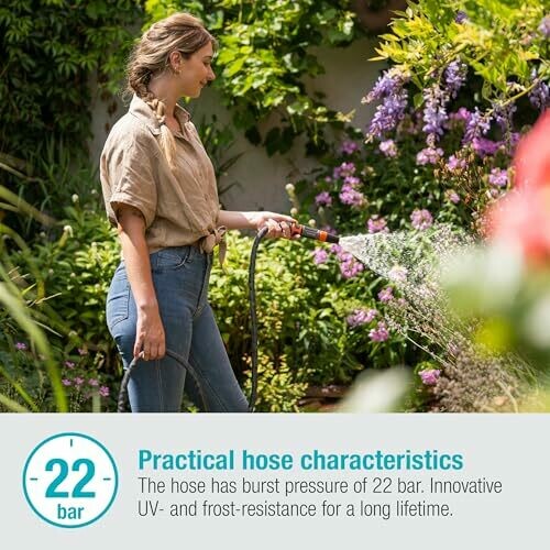 - Flexible hose for easy maneuvering during irrigation, with a pleasant feel for comfortable as well as easy handling